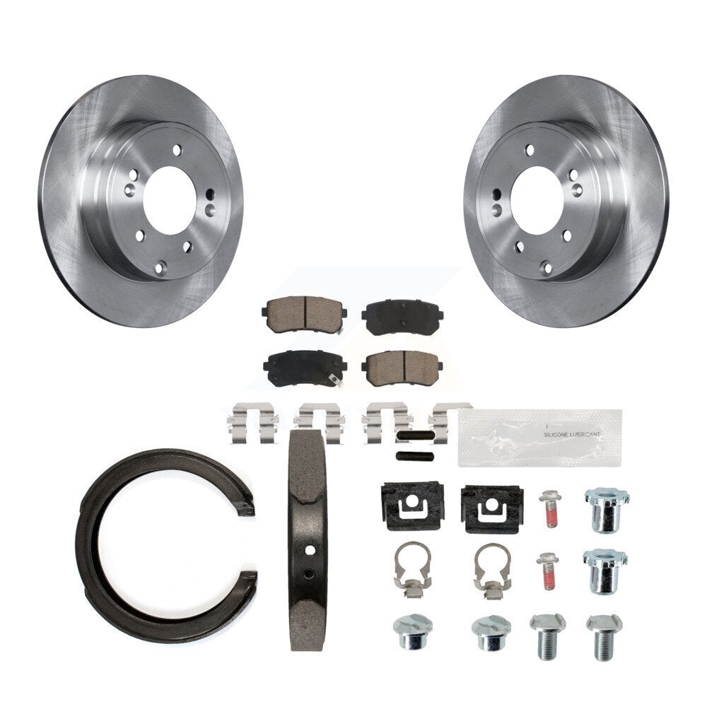 Rear Disc Rotors Ceramic Pads Parking Brake Shoes & Hardware Kit For Kia Optima