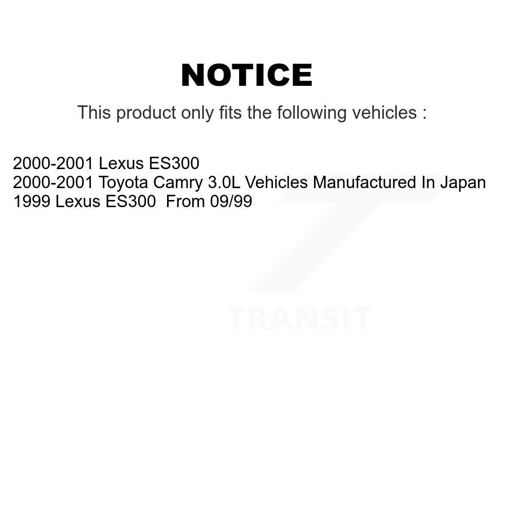 | 1999 | Lexus | ES300 | All | From 09/99 | All | All | All | All |